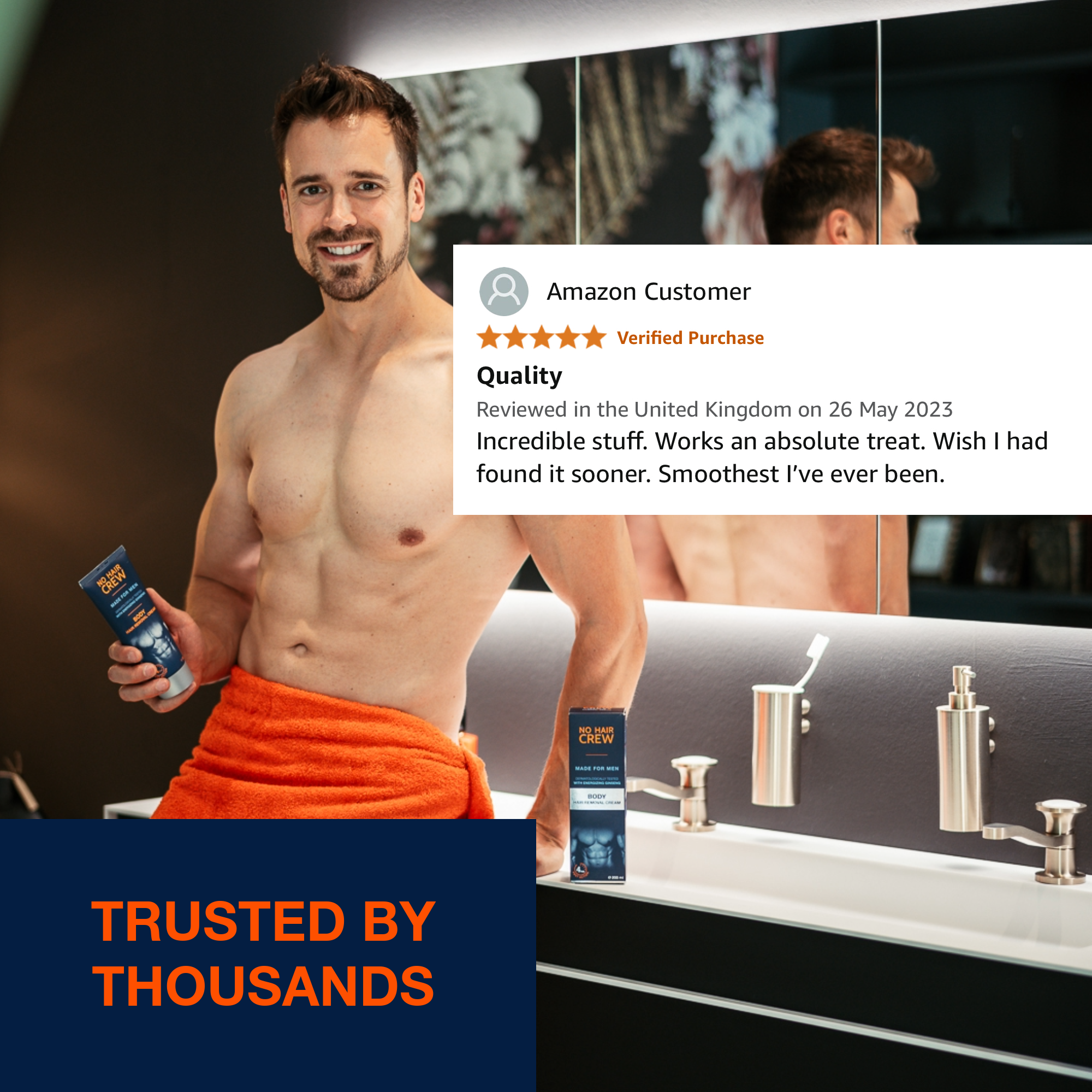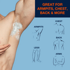 Eine Premium-Haarentfernungscreme ideal für die meisten Körperteile wie Brust, Rücken, Arme, Beine und Achselhöhlen. Einfach und schmerzfrei in der Anwendung. Auftragen, warten und wegwischen.